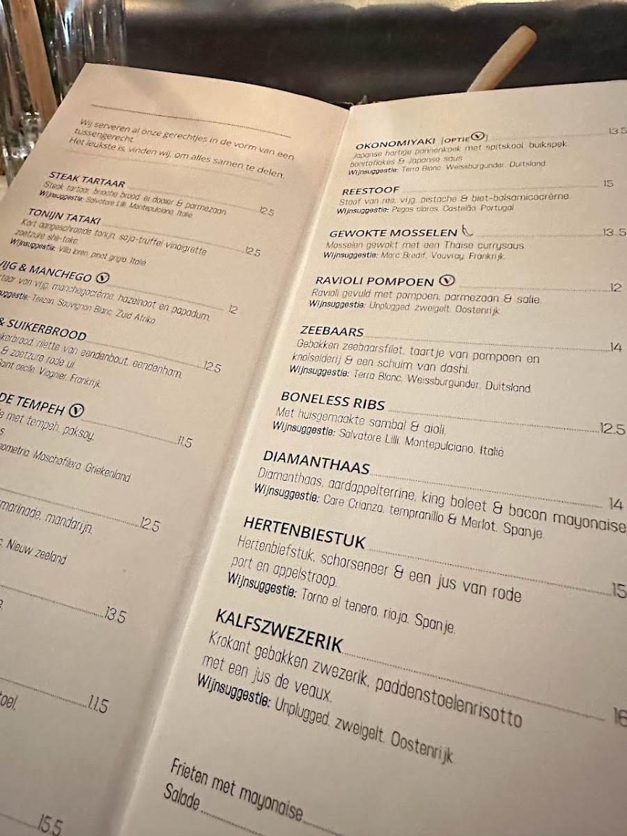 Main courses such as Risotto Garnalen emphasize creaminess and elegance, while meat lovers will appreciate the hearty appeal of Diamanthaas Met Aardappelpuree and Aardappelpurree Met Diamanthaas, both highlighting tender beef paired with smooth, satisfying sides. These dishes anchor the menu and give it a sense of completeness.