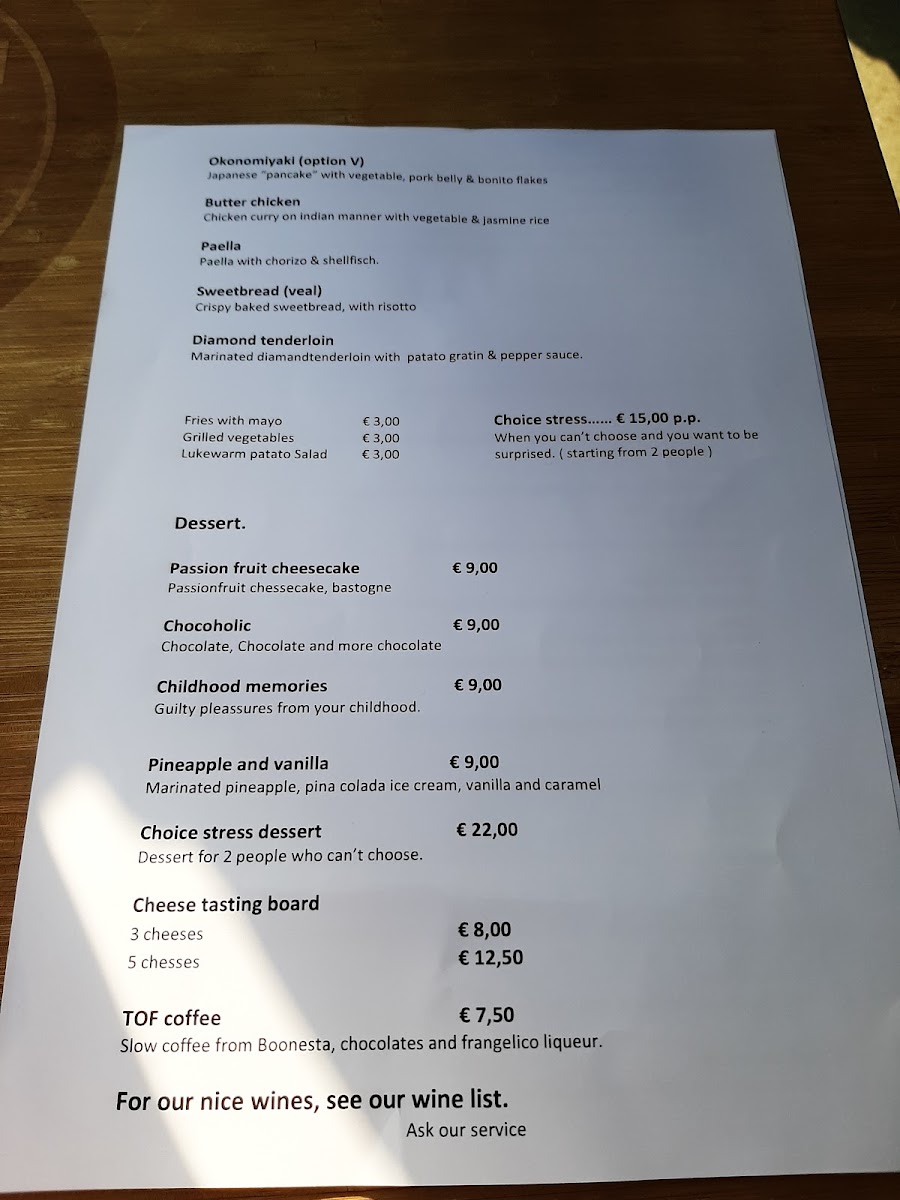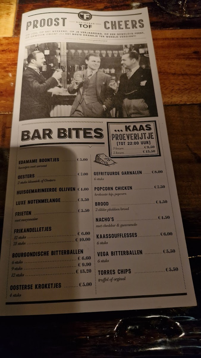 Desserts and drinks round out the experience seamlessly. Sweet endings like Toetje, Grand Desert, and the generous 2 Persoons Dessert Plank invite sharing and lingering at the table. Beverage options such as Zoete Witte Wijn and Great Beer Kasteel Cuvee complement both savory and sweet choices, reinforcing the gastrobar concept where food and drink are equally important. Altogether, the menu feels cohesive, versatile, and well-judged, making it easy to see why it appeals to a broad range of tastes without losing its distinctive character.